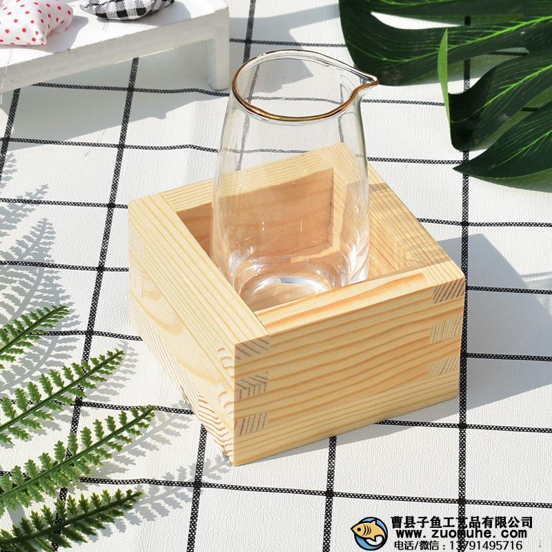 日本清酒杯木盒酒托 居酒屋酒器 實木正方形酒杯